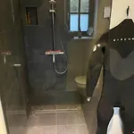 L'arredamento interno è dotato di un divano e una scrivania e di una TV a schermo piatto con canali satellitari. Reetdachhaus Bei St Peter-Ording - Tating Villa dispone di un bagno con un bagno alla francese. A disposizione c'è anche asciugacapelli, essiccatori e teli da bagno.